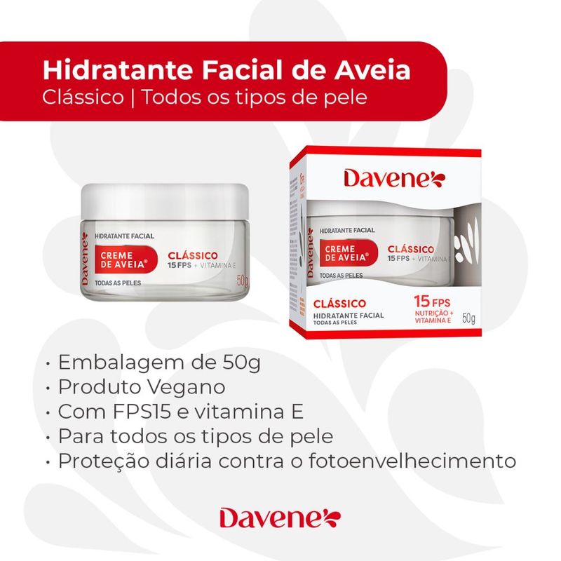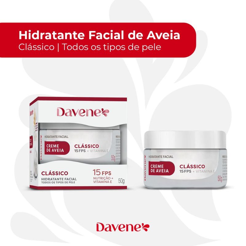 O Creme Hidratante Facial de Aveia Clássico 50g da Davene é a escolha perfeita para quem busca hidratação suave, nutrição diária e cuidado delicado para a pele do rosto.