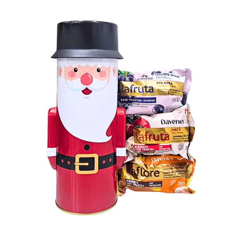 O Kit Lata de Natal Davene é a escolha perfeita para presentear com carinho, sofisticação e bem-estar. Acompanhado por uma lata temática natalina exclusiva, com design lúdico e decorativo, o kit traz 3 sabonetes vegetais de 150g, cuidadosamente selecionados das linhas La Fruta e La Flore, conhecidas por suas fragrâncias marcantes e fórmulas suaves.