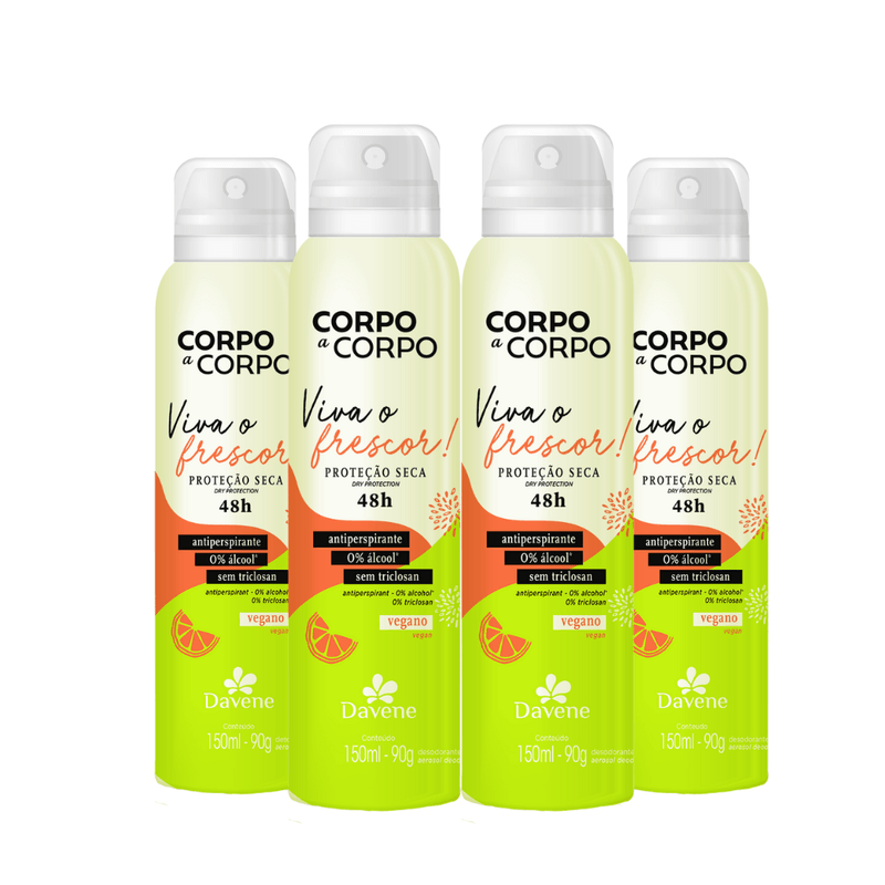 Kit Mês do Brasil 10 (4x Desodorante Aero 150ml) Composto por: 4x Desodorante Antiperspirante Aerossol Corpo a Corpo Frescor 150ml - Davene